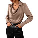 ACHIEVE A SOPHISTICATED LOOK WITH THIS DRAPED GLOSSY BLOUSE!
